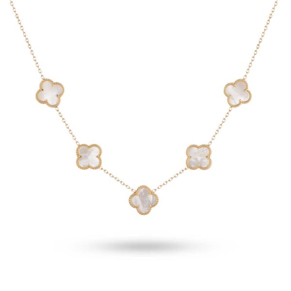 گردنبند ونکلیف پنج گل سنگ سفید(11146)